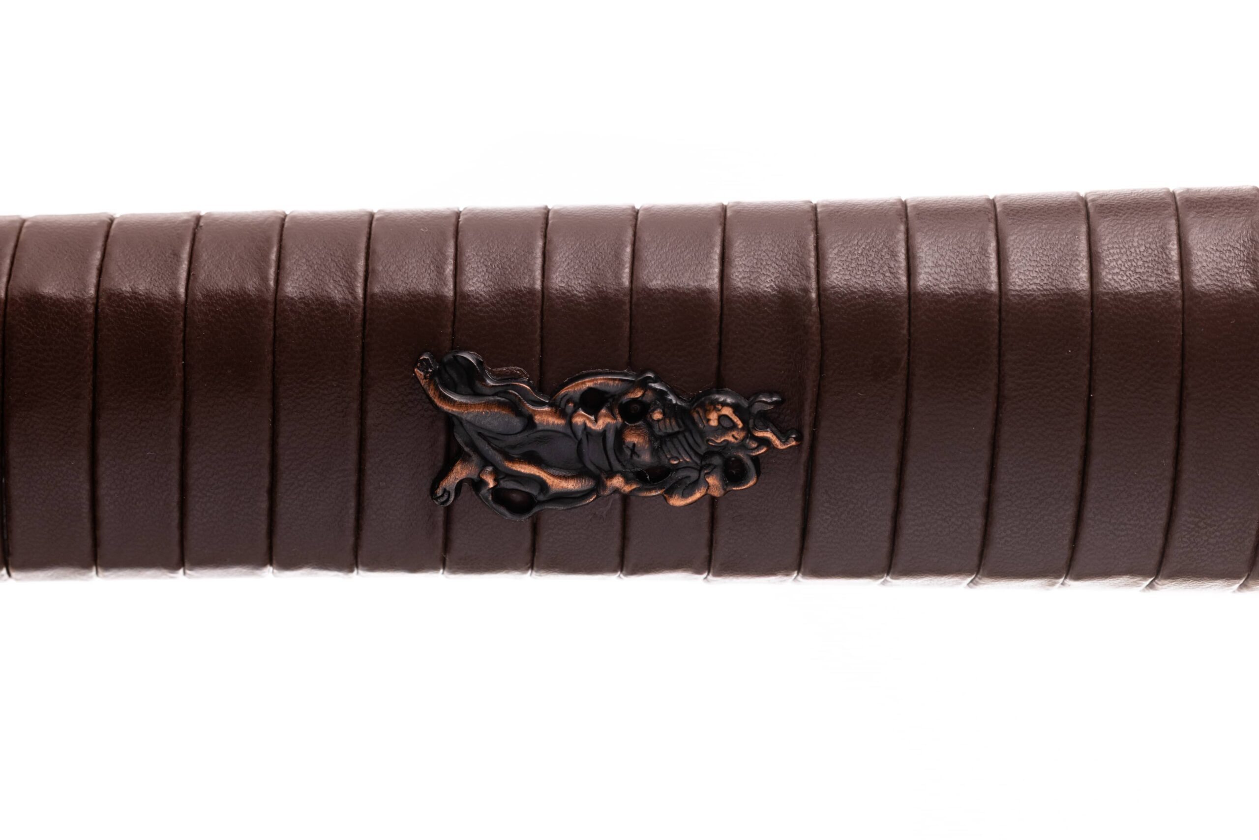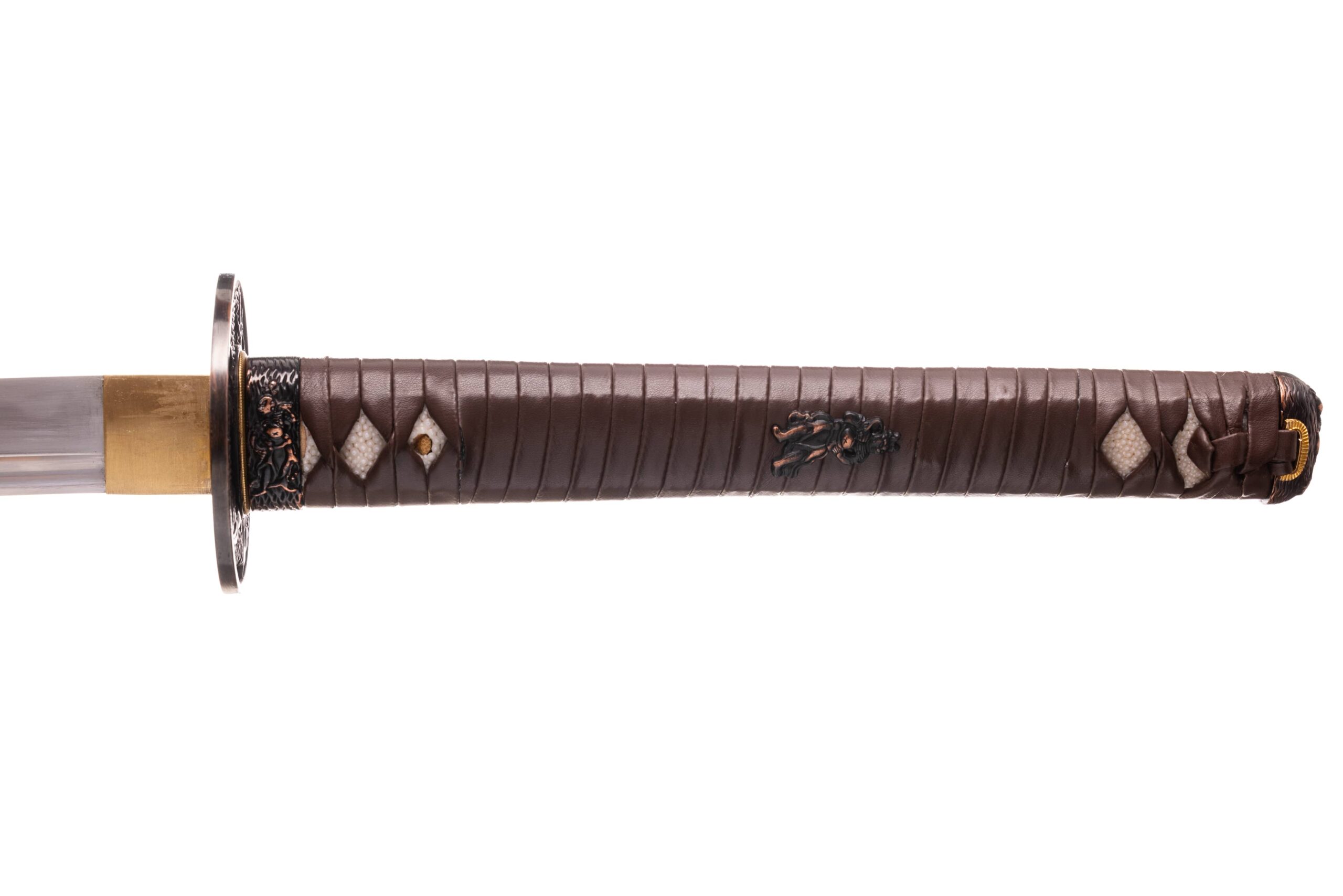 Rękojeść (tsuka) o długości 27 cm, obłożona prawdziwą same-gawą. Oplot w kolorze brązowym, skażany, w stylu katate hira maki. Miecz można całkowicie rozebrać na pojedyncze elementy w celu ich konserwacji lub wymiany.