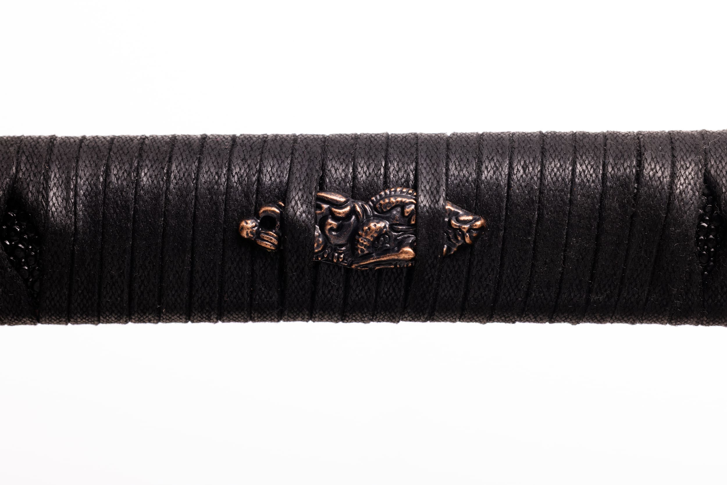Rękojeść (tsuka) o długości 34,5cm, obłożona czarną same-gawą. Oplot z woskowanej czarnej taśmy w typie katate hira maki. Miecz można całkowicie rozebrać na pojedyncze elementy w celu ich konserwacji lub wymiany.