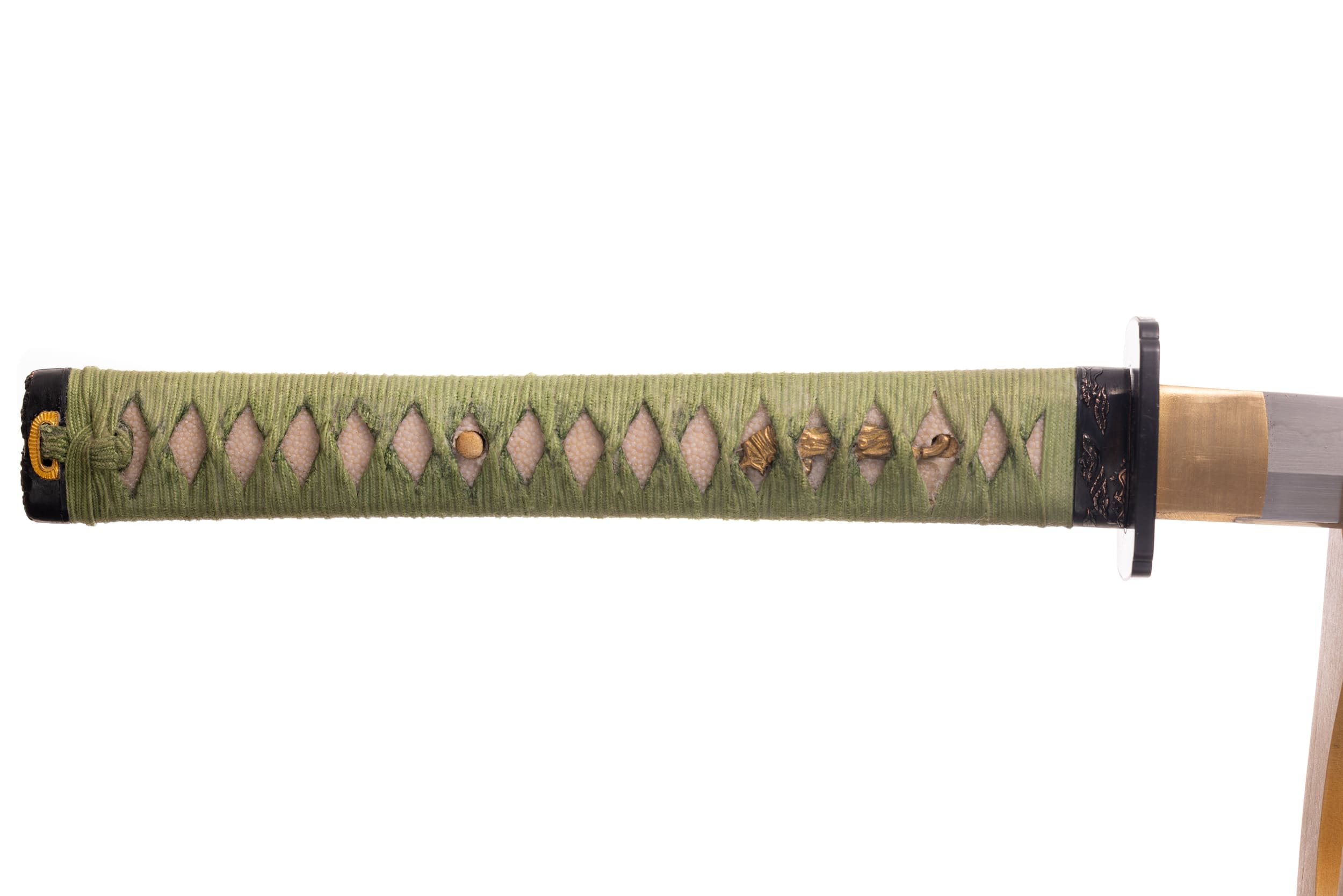 Rękojeść (tsuka) o długości 26 cm, obłożona naturalną same-gawą. Oplot bawełniany, jasnozielony, lekko zmechacony, o typowym splocie. Menuki z motywem smoka. Miecz można całkowicie rozebrać na pojedyncze elementy w celu ich konserwacji lub wymiany.