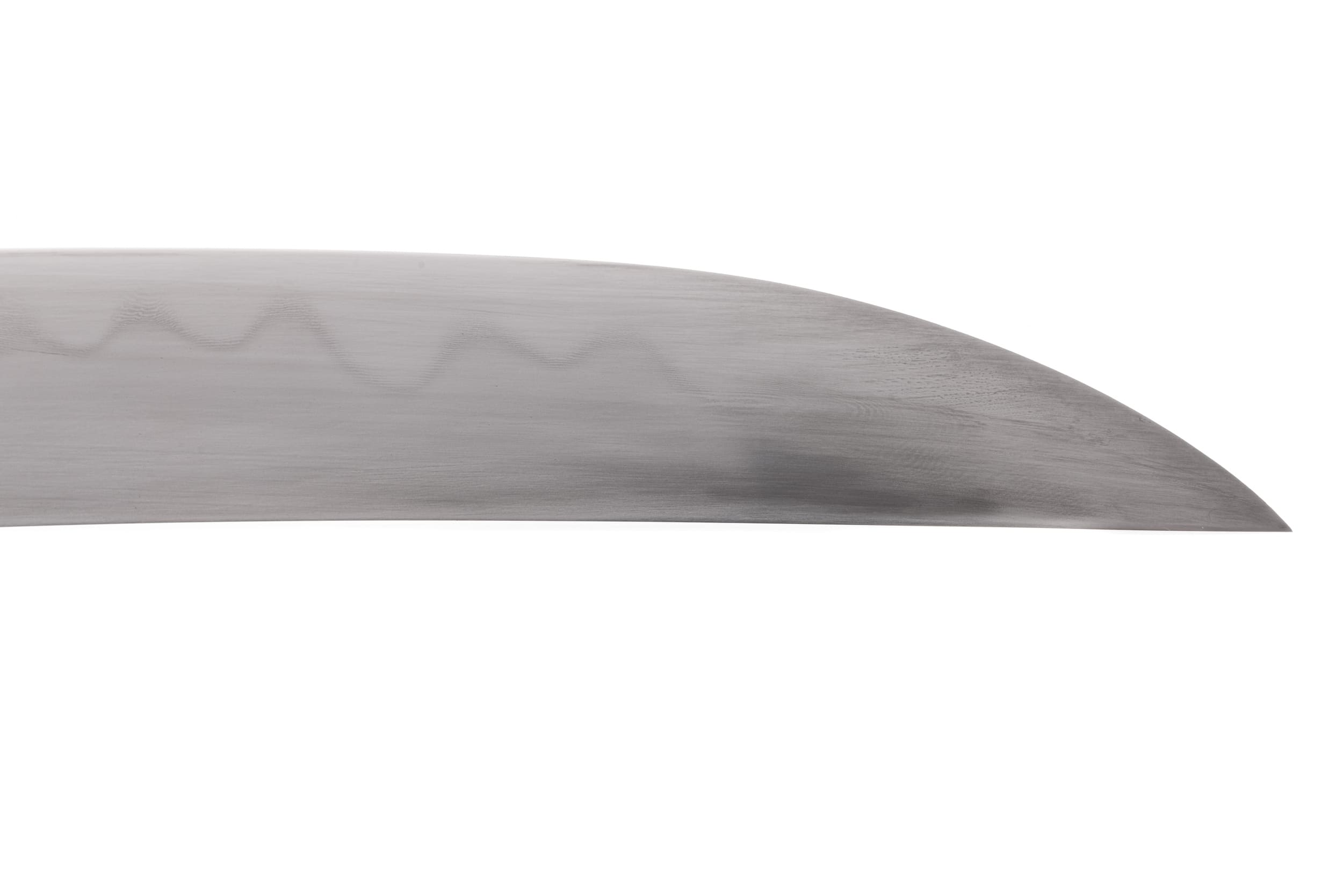 Głownia wykuta ręcznie ze stali wysokowęglowej 1045 o dużej odporności na wykruszanie i urazy mechaniczne. Kuta i hartowana selektywnie i skuwana warstwowo z hamonem typu gunome i widoczną hadą. Ostrze typu hira-zukuri długości 23,7 cm, polerowane i szlifowane.