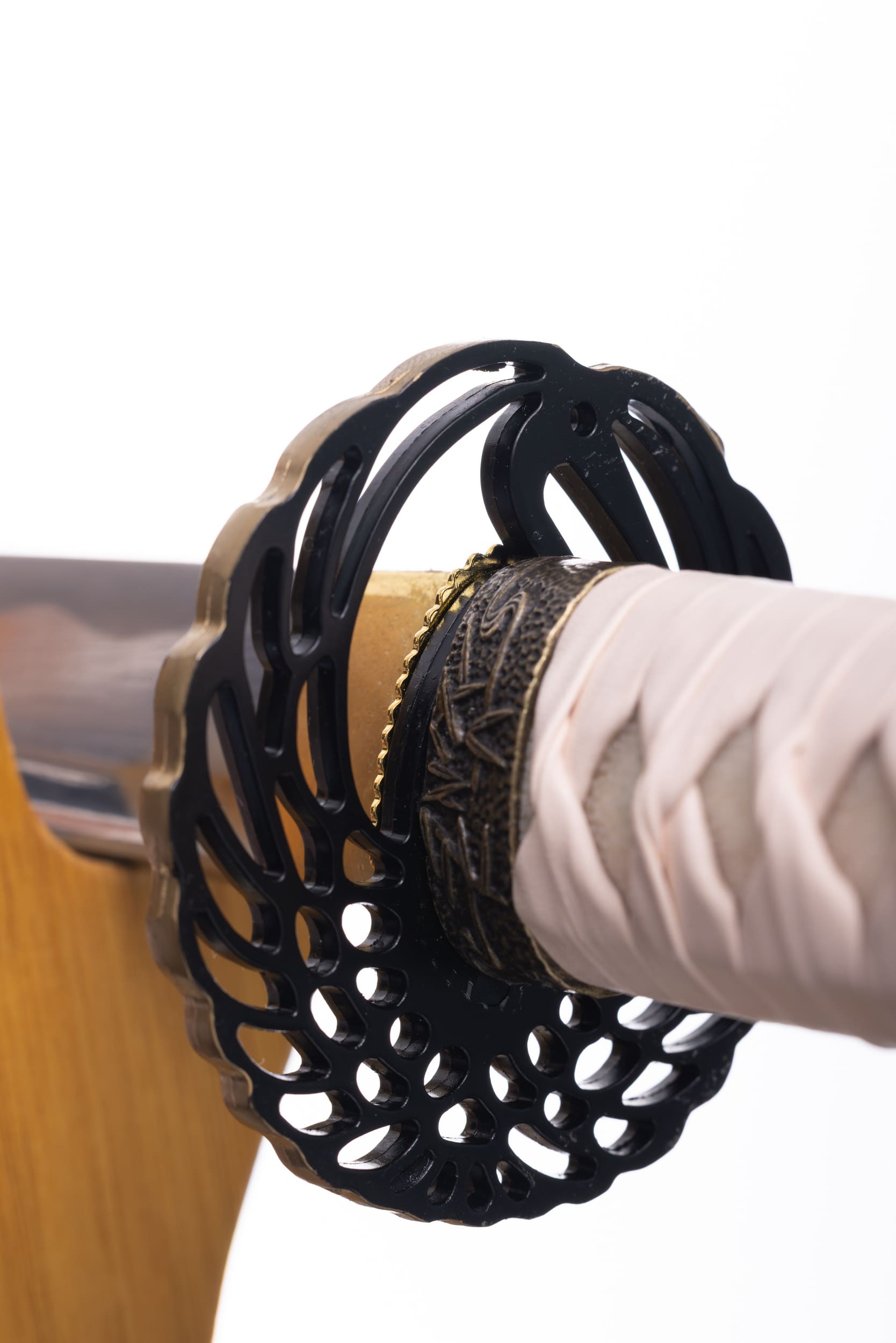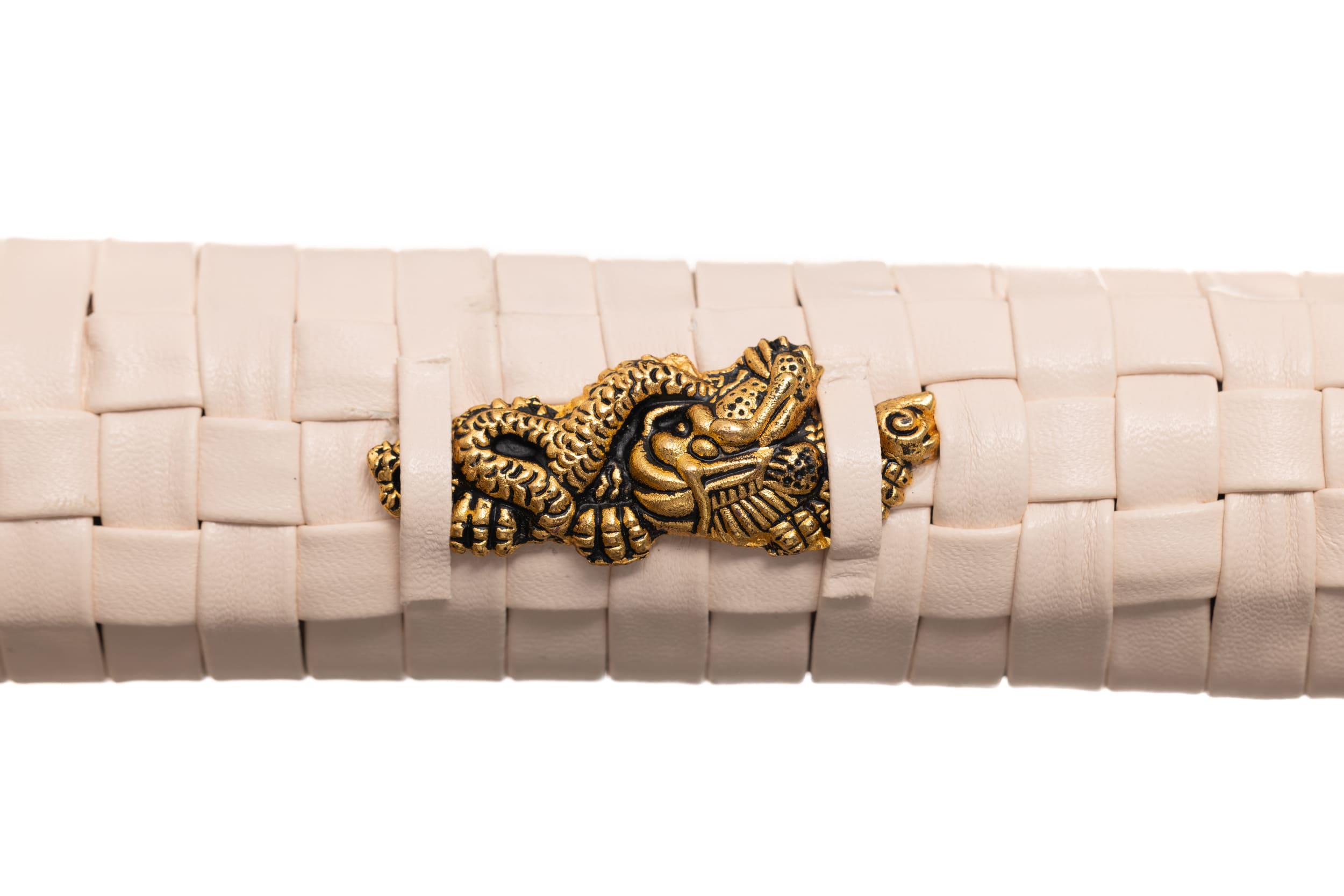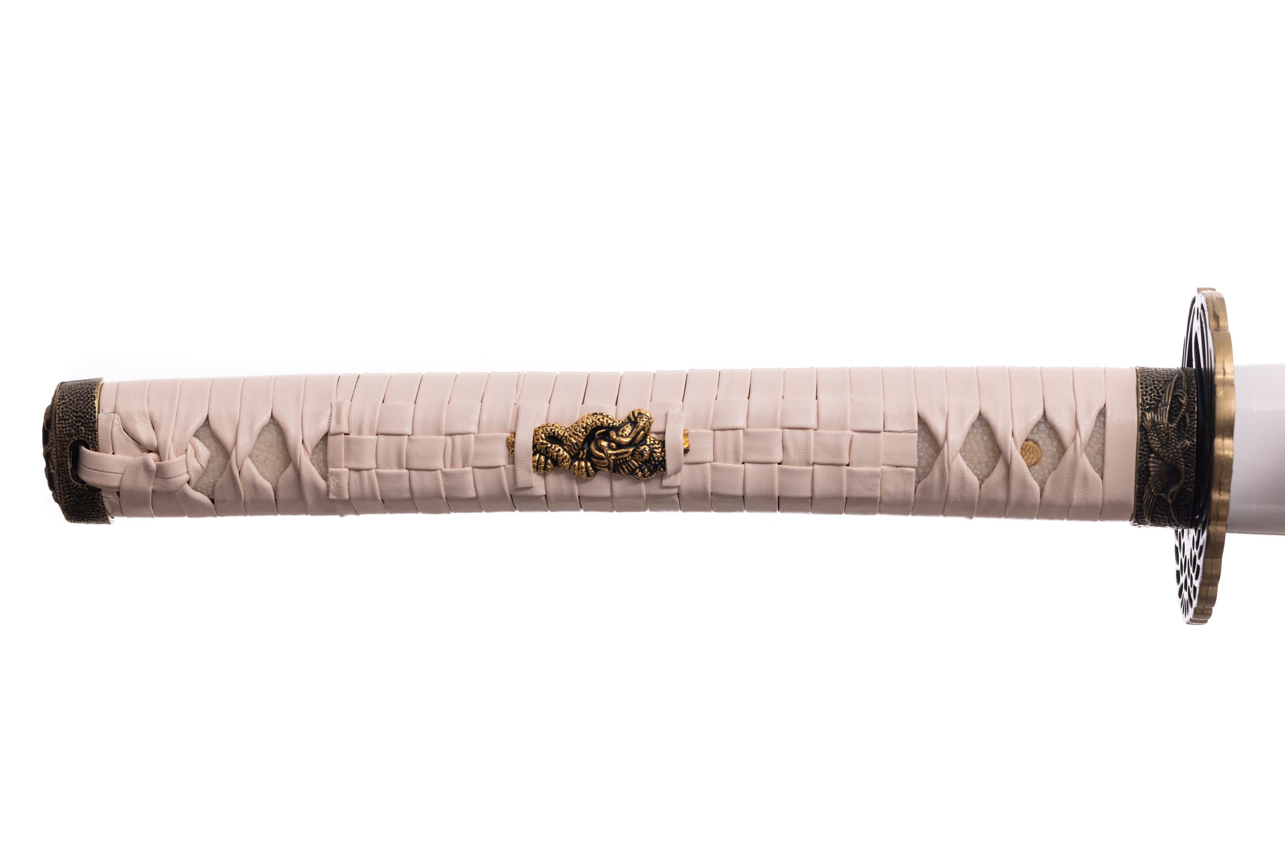Rękojeść (tsuka) o długości 27 cm, obłożona same-gawą. Oplot z białej skóry o splocie w typie gyu kawa kumiage maki. Miecz można całkowicie rozebrać na pojedyncze elementy w celu ich konserwacji lub wymiany.