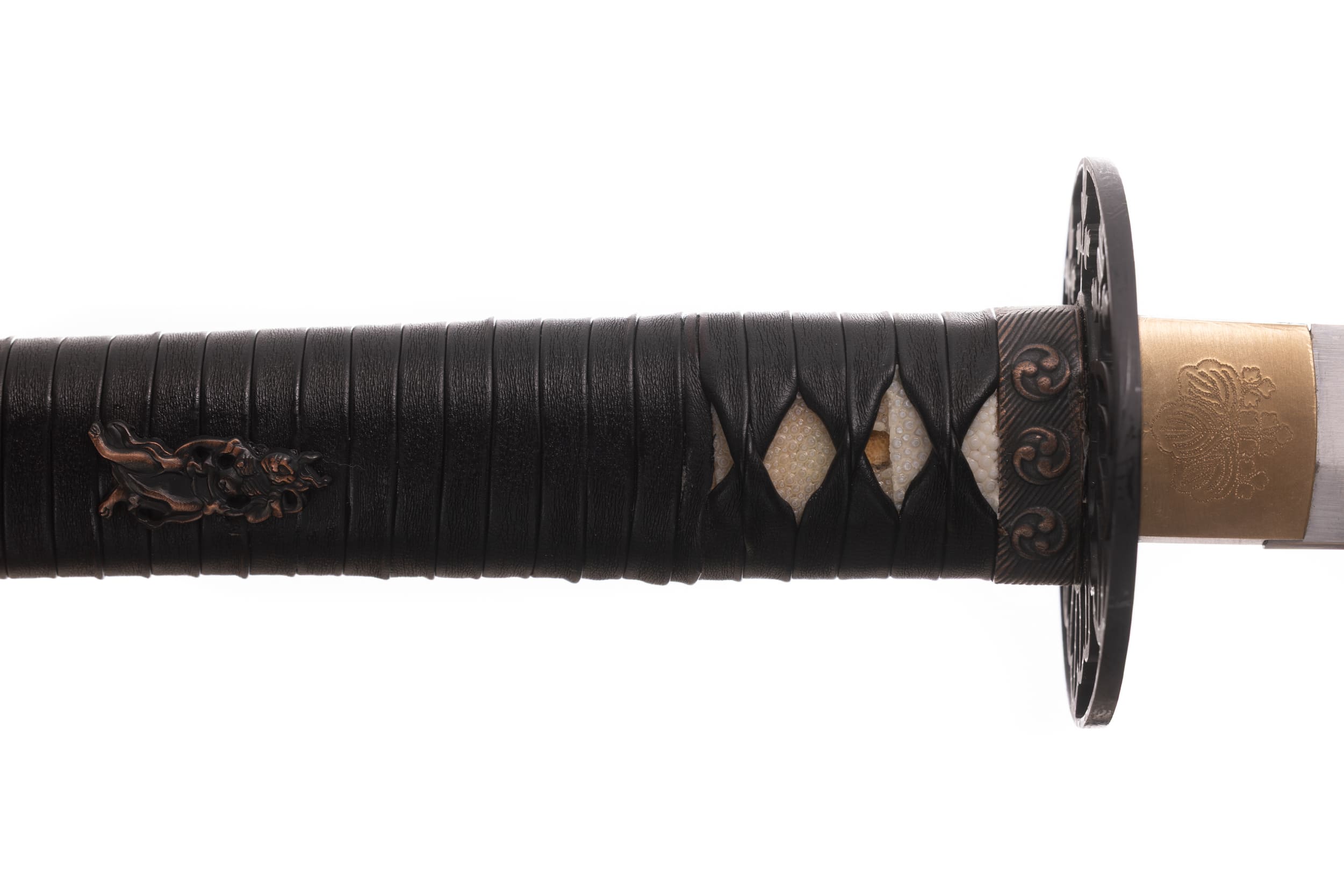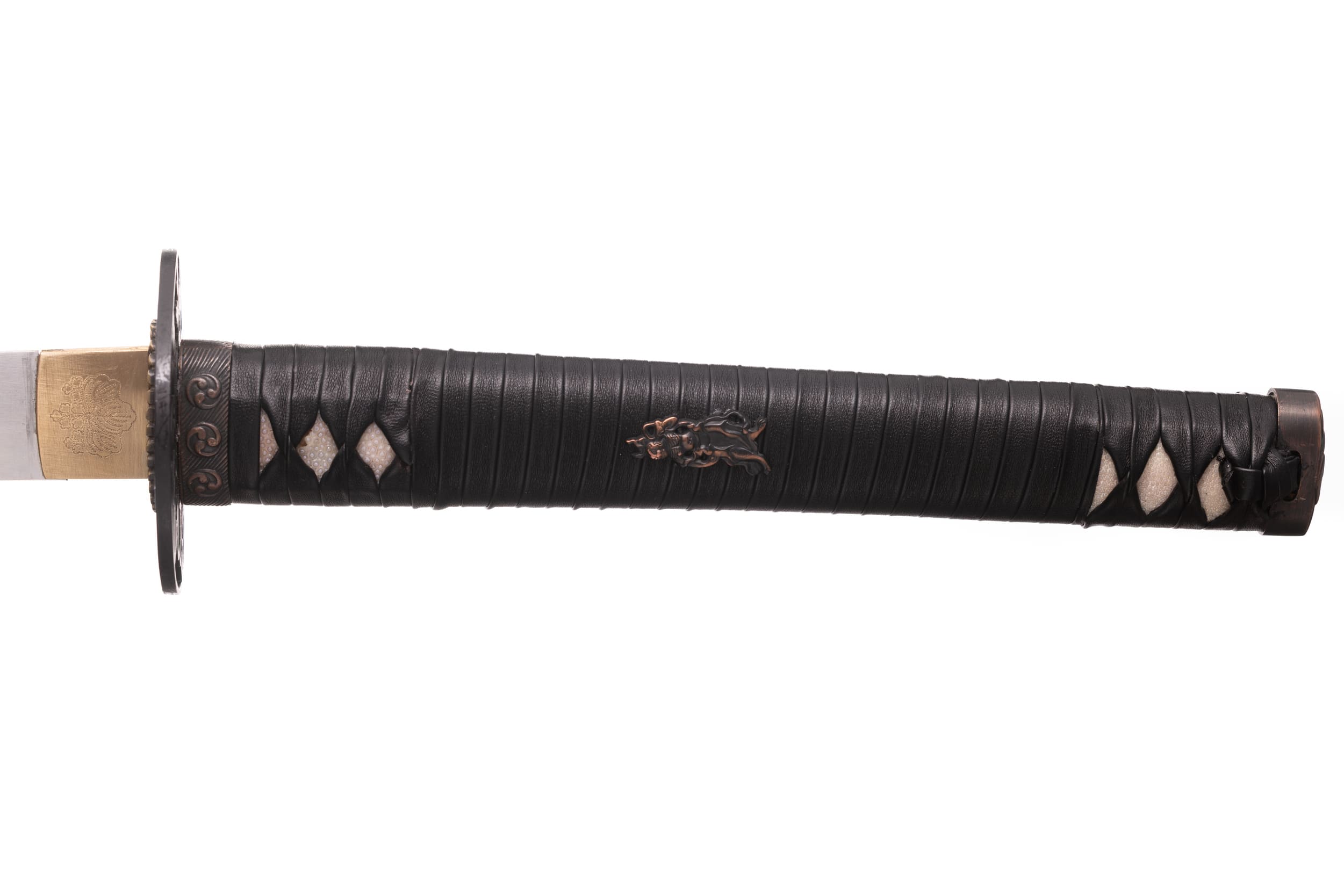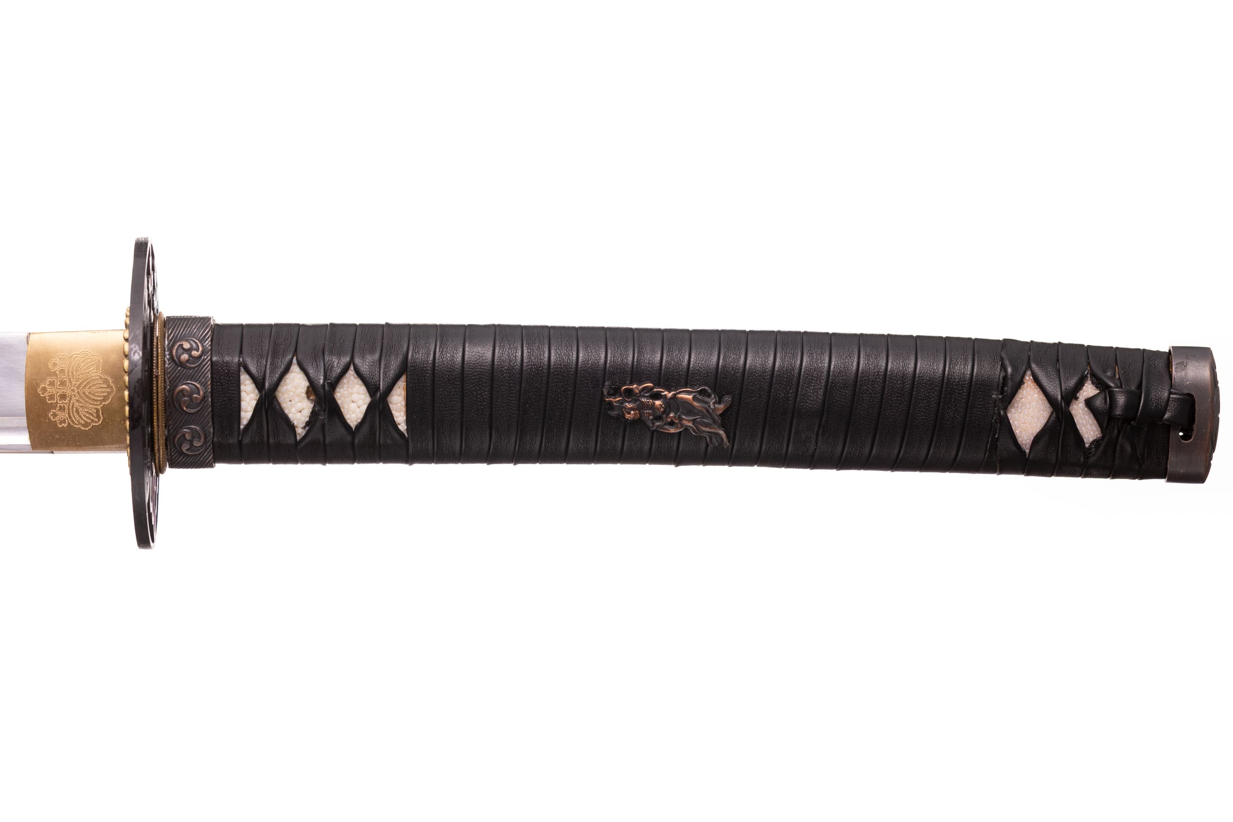 Rękojeść (tsuka) o długości 28 cm, obłożona same-gawą. Oplot japoński, czarny, skórzany o splocie w typie katate hira maki. Miecz można całkowicie rozebrać na pojedyncze elementy w celu ich konserwacji lub wymiany.