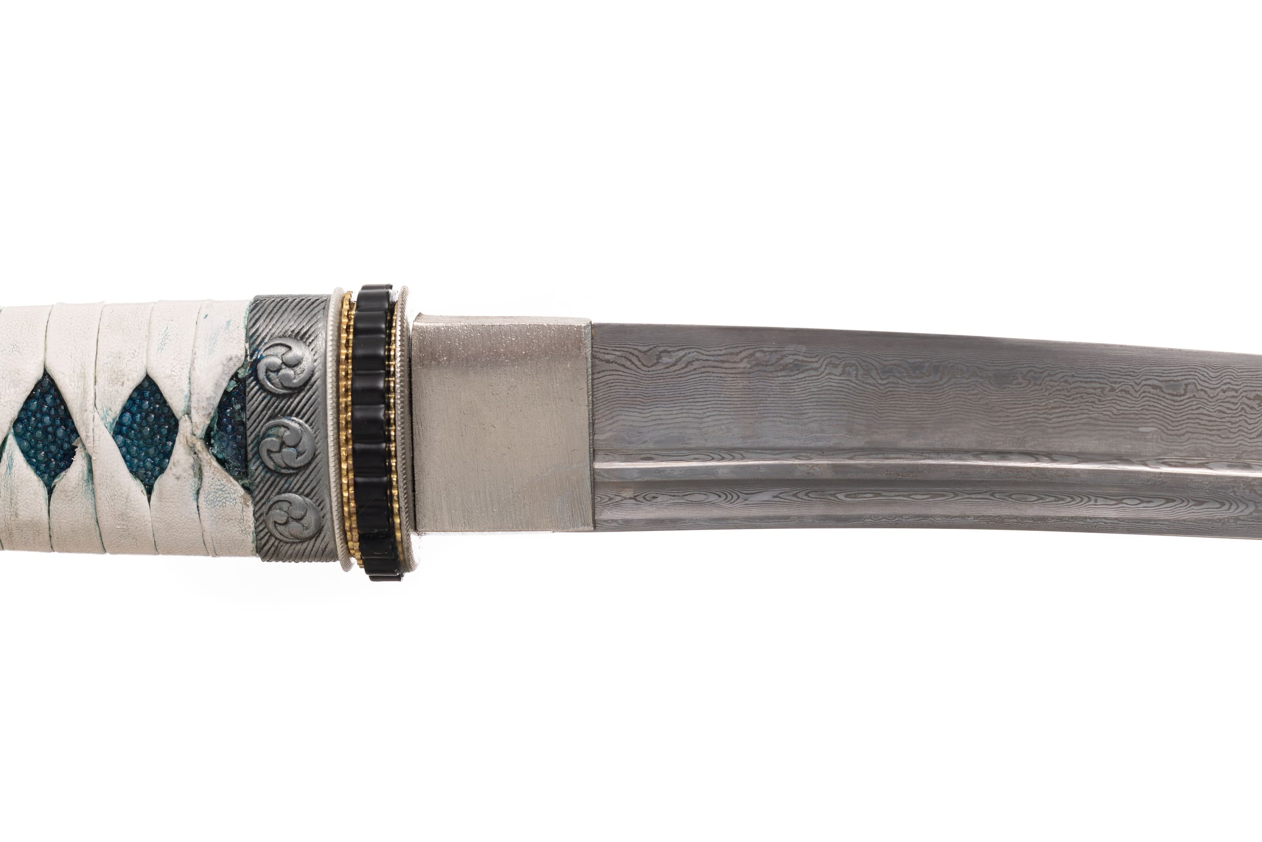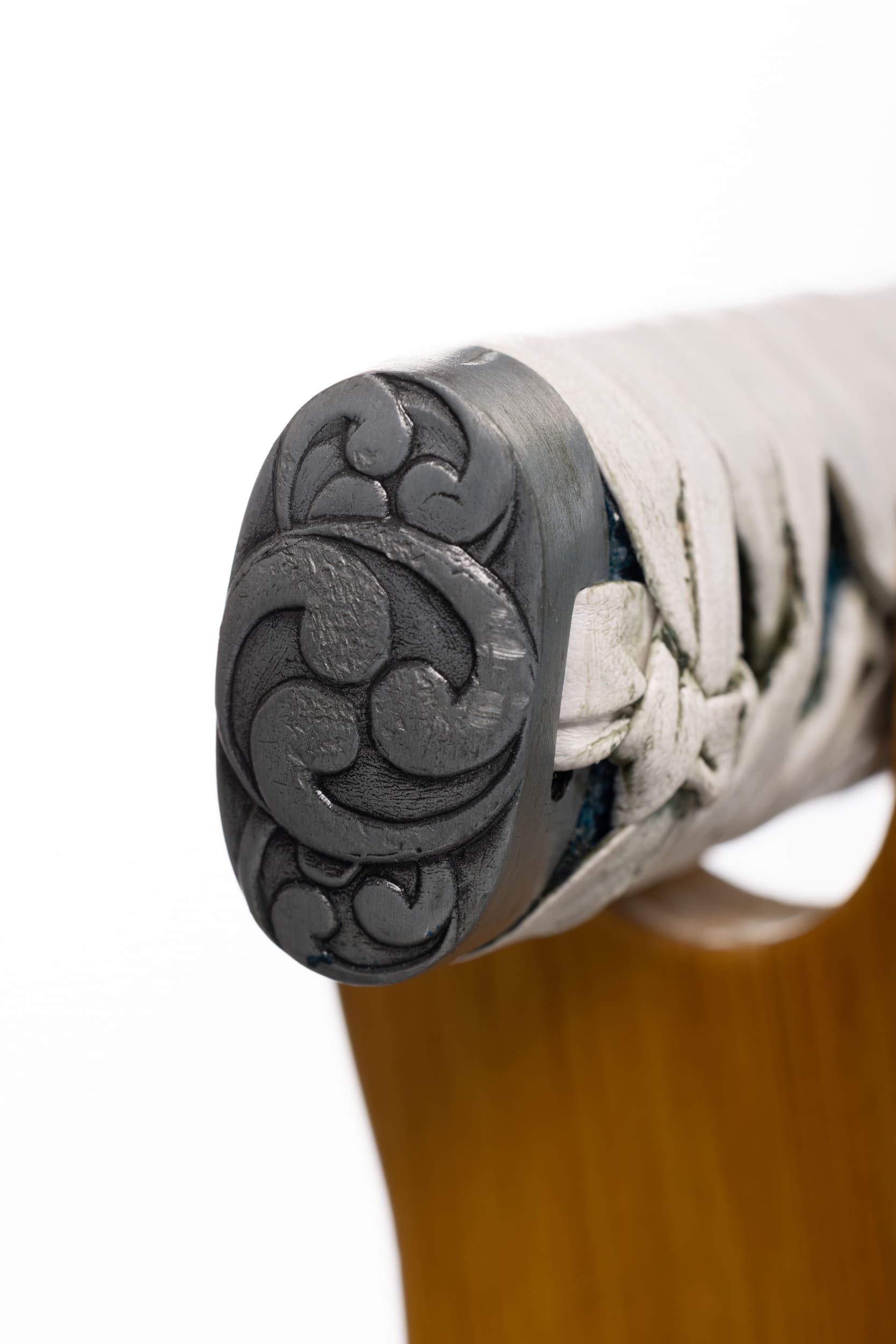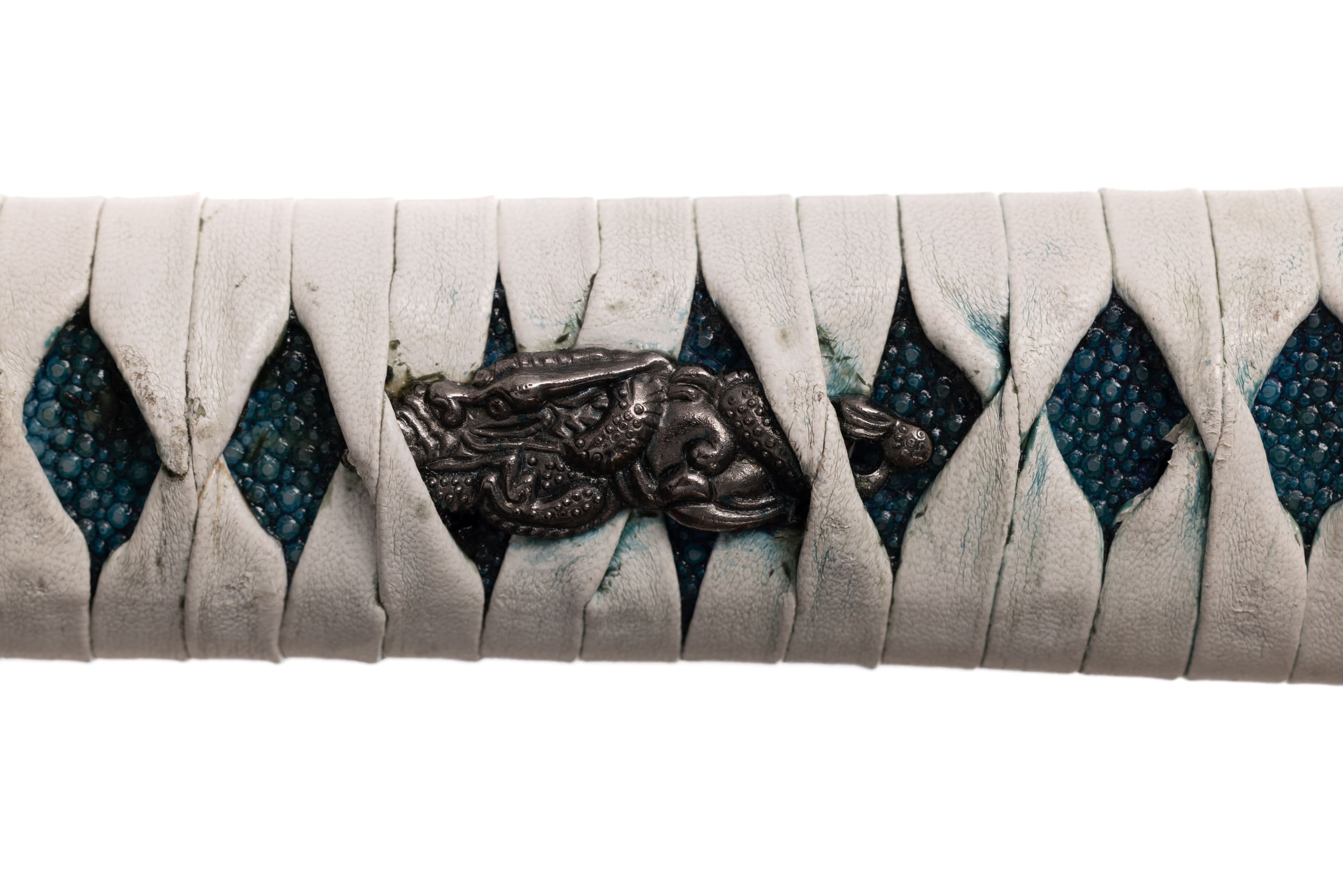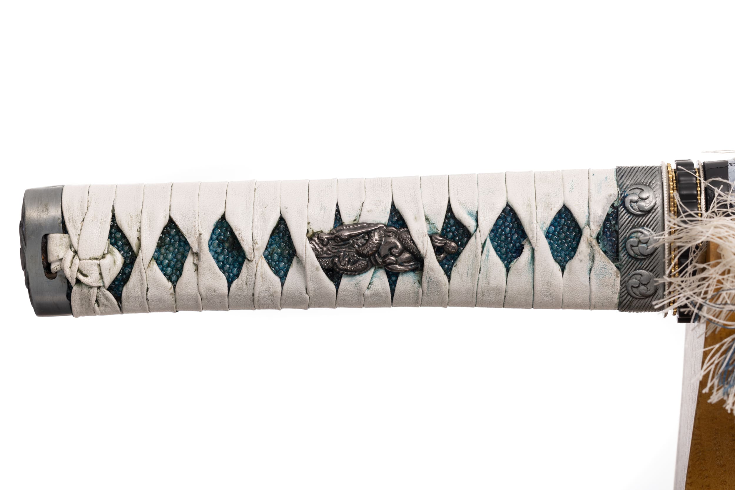 Rękojeść (tsuka) ma długość 17,5 cm, jest drewniana, obłożona prawdziwą skórą płaszczki (same-gawa) zabarwioną na niebiesko. Oplot (tsuka ito) biały, skórzany, o typowym splocie patynowany na niebiesko. Miecz można całkowicie rozebrać na pojedyncze elementy w celu ich konserwacji lub wymiany.