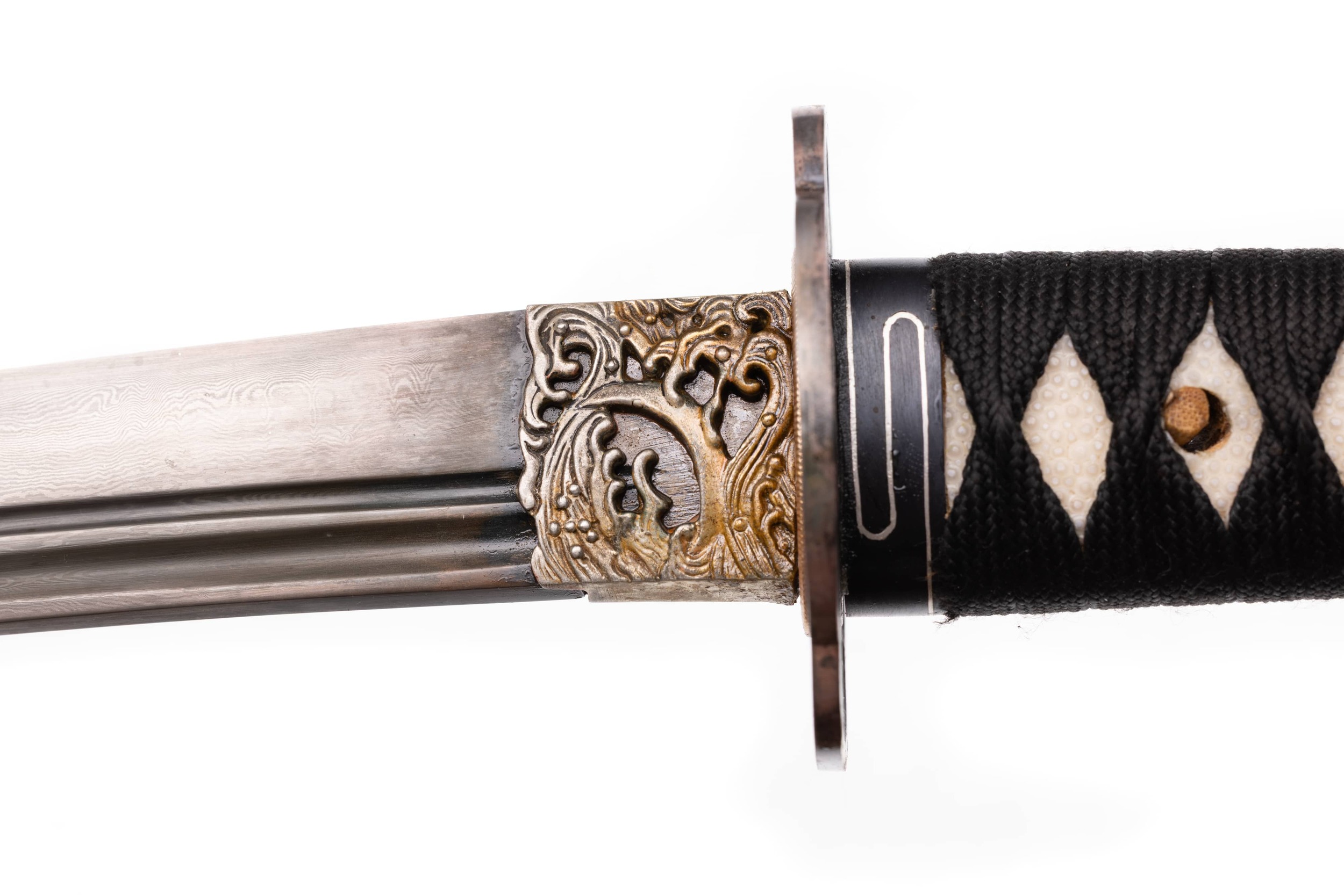 Rękojeść (tsuka) ma długość 18 cm, jest drewniana, obłożona prawdziwą skórą płaszczki (same-gawa). Oplot (tsuka ito) ugrowy, o typowym splocie, wykonany z bawełny z domieszką poliestru. Miecz można całkowicie rozebrać na pojedyncze elementy w celu ich konserwacji lub wymiany.