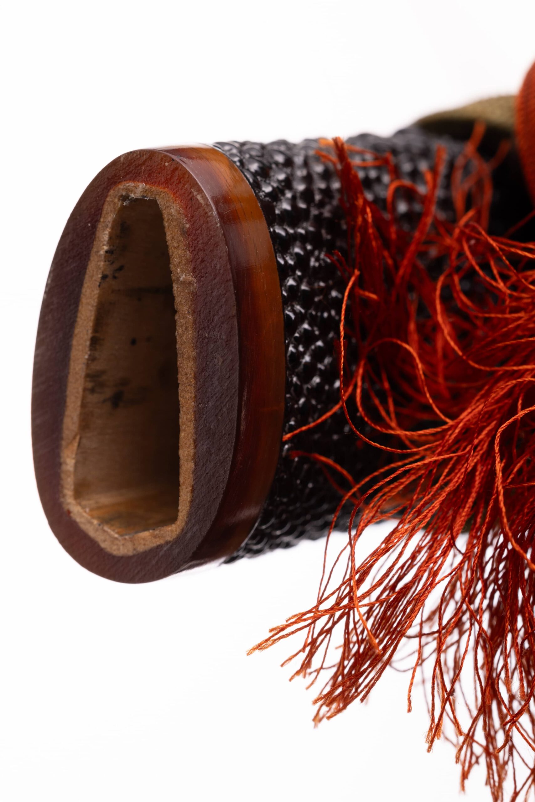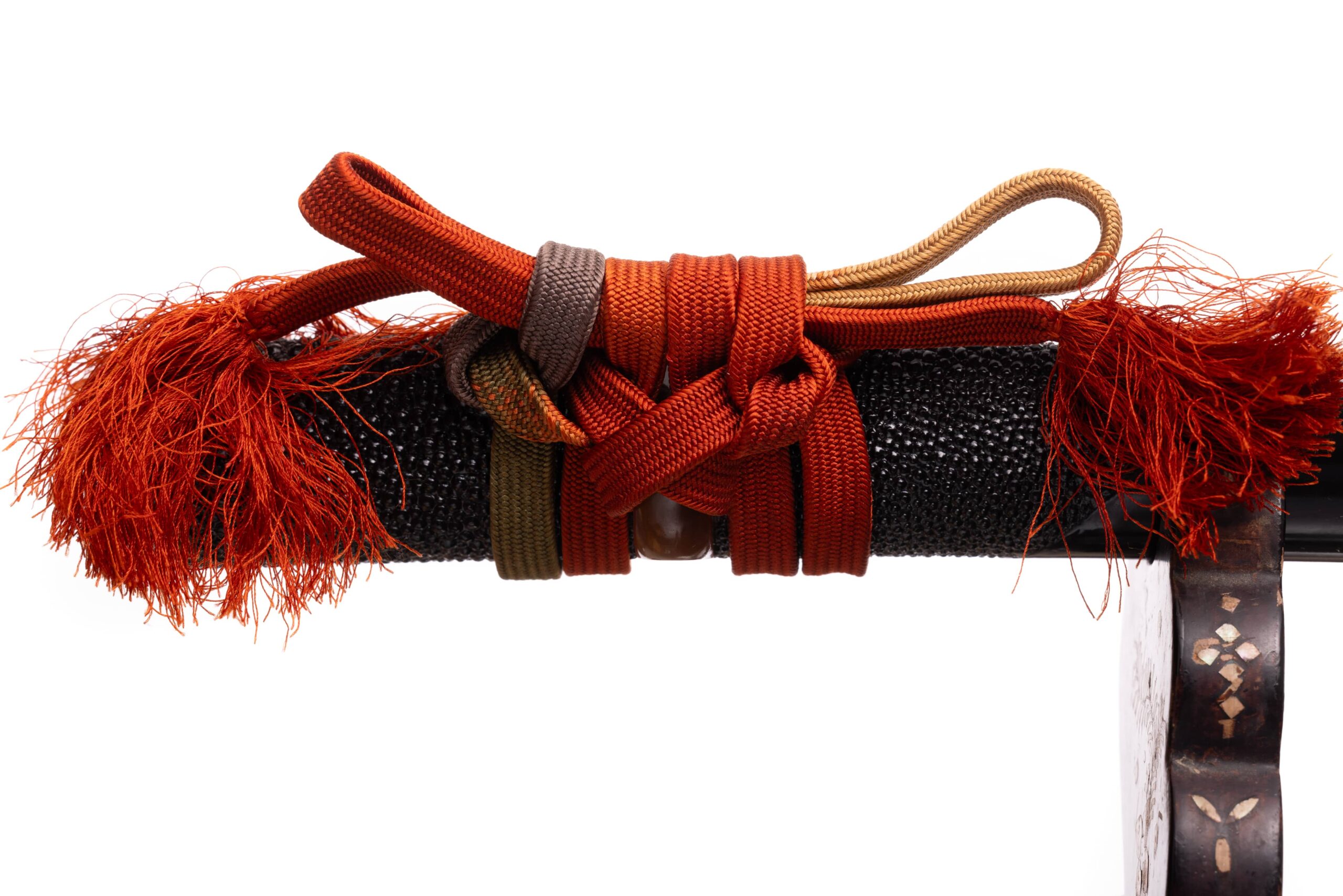 Rękojeść (tsuka) o długości 27 cm, obłożona syntetycznączarną same-gawą. Sageo japońskie, jedwabne z przejściem tonalnym między trzema kolorami (żółty, pomarańczowy i szary). Pochwa z tego samego drewna co rękojeść. Oplot w kolorze brązowym, o typowym splocie, wykonany z bawełny z domieszką poliestru. Miecz można całkowicie rozebrać na pojedyncze elementy w celu ich konserwacji lub wymiany.