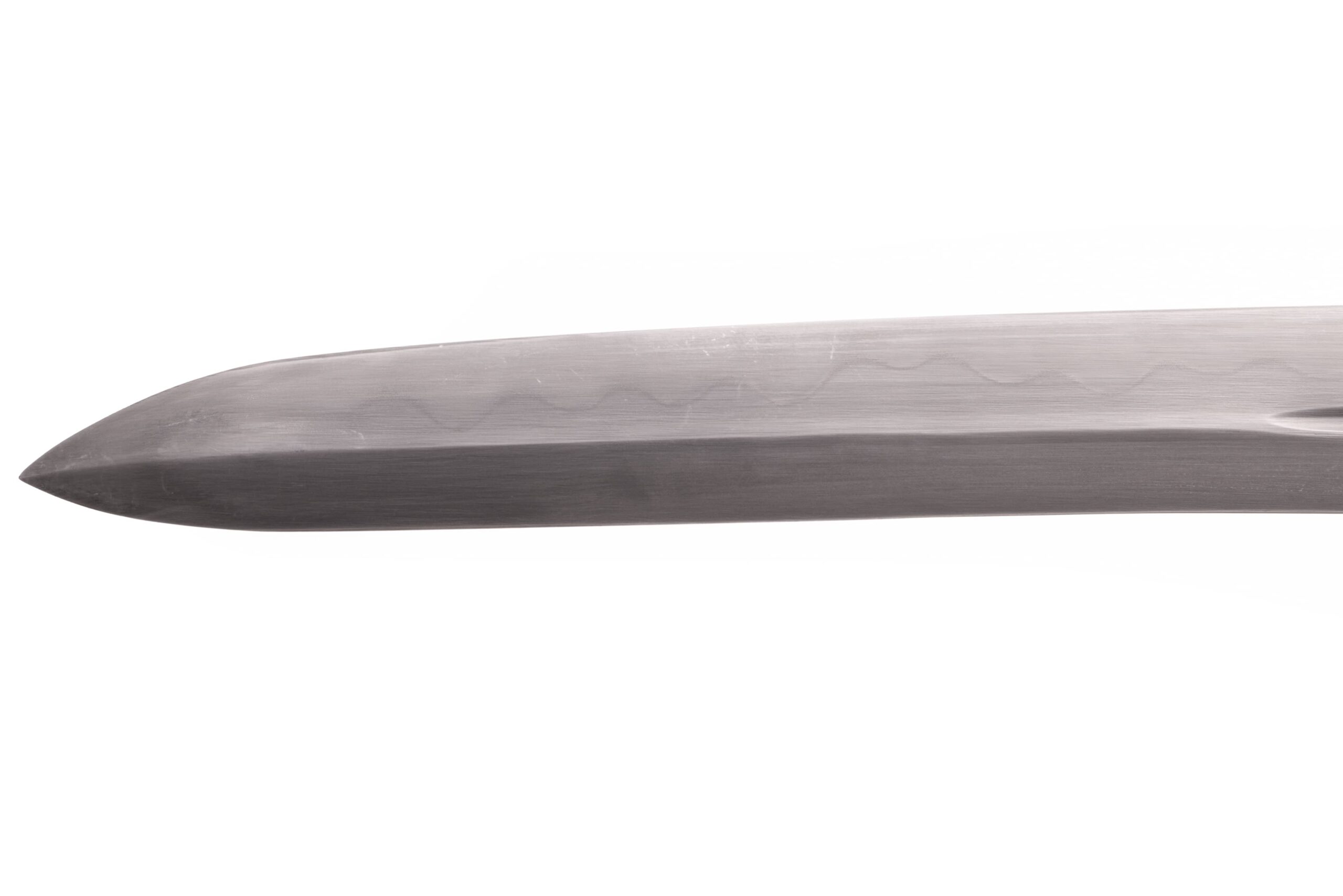 Twardość głowni ok. 56 HRC. Miecz jest dobrze wyważony (waga 0,9 kg), po doostrzeniu może z powodzeniem służyć do cięcia mat (shinken). Ostrze typu kogarasumaru-zukuri . Miecz jest dobrze wyważony (waga 0,9 kg), może z powodzeniem służyć do cięcia mat (shinken), po do ostrzeniu. Ostrze posiada zbroczę/strudzinę (bo-hi), klinga mocowana na 2 kołeczki mekugi. Katana ma sprężyste ostrze o dobrej geometrii.
