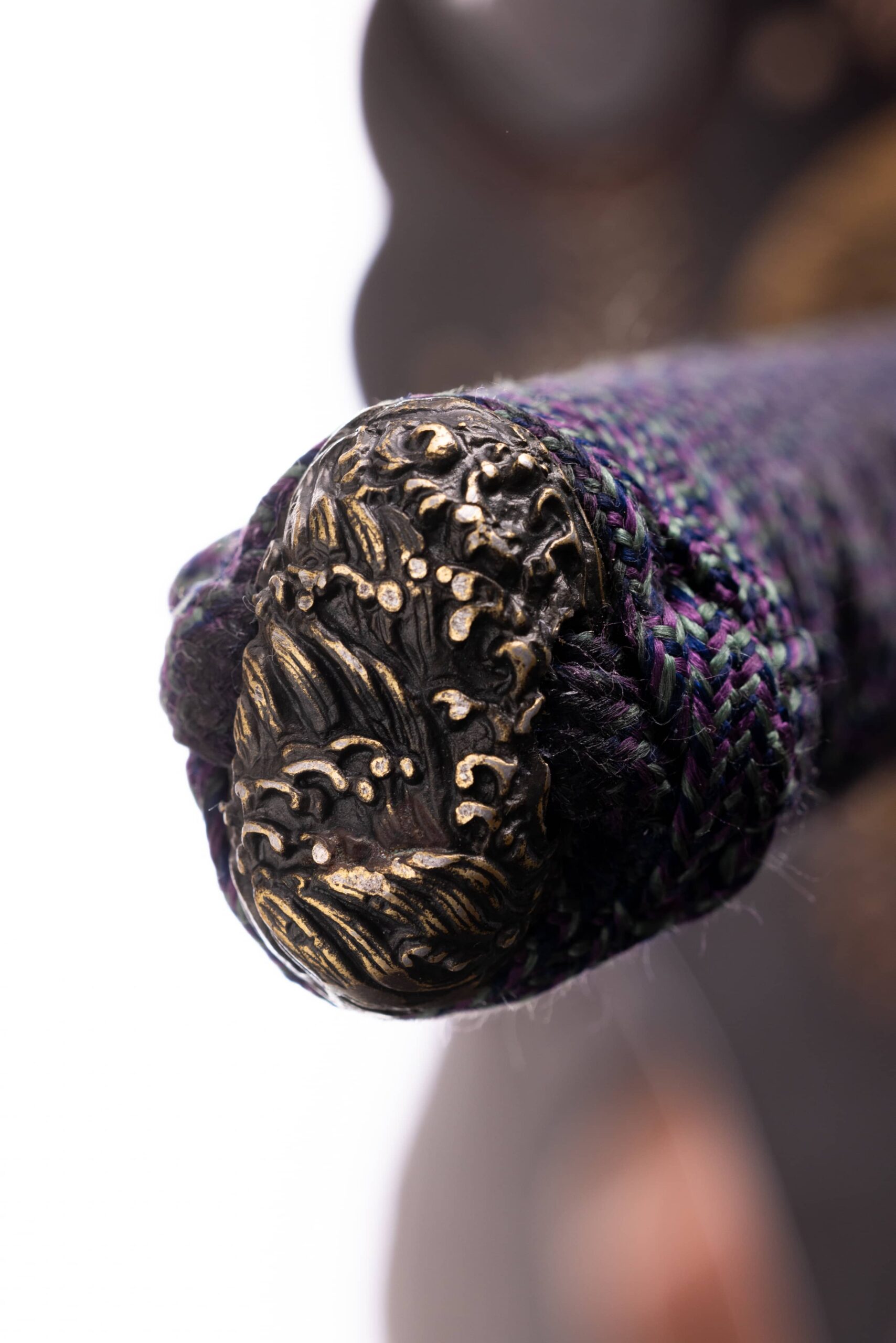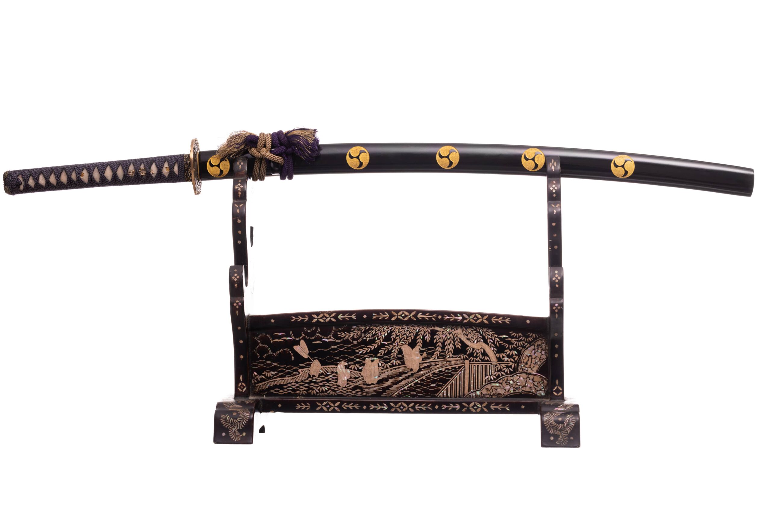 Rękojeść (tsuka) o długości 27,5 cm, obłożona prawdziwą same-gawą. Oplot jedwabny, japoński, spleciony z trzech rodzajów nici (niebieskiej, fioletowej i czarnej), o typowym splocie. Miecz można całkowicie rozebrać na pojedyncze elementy w celu ich konserwacji lub wymiany.