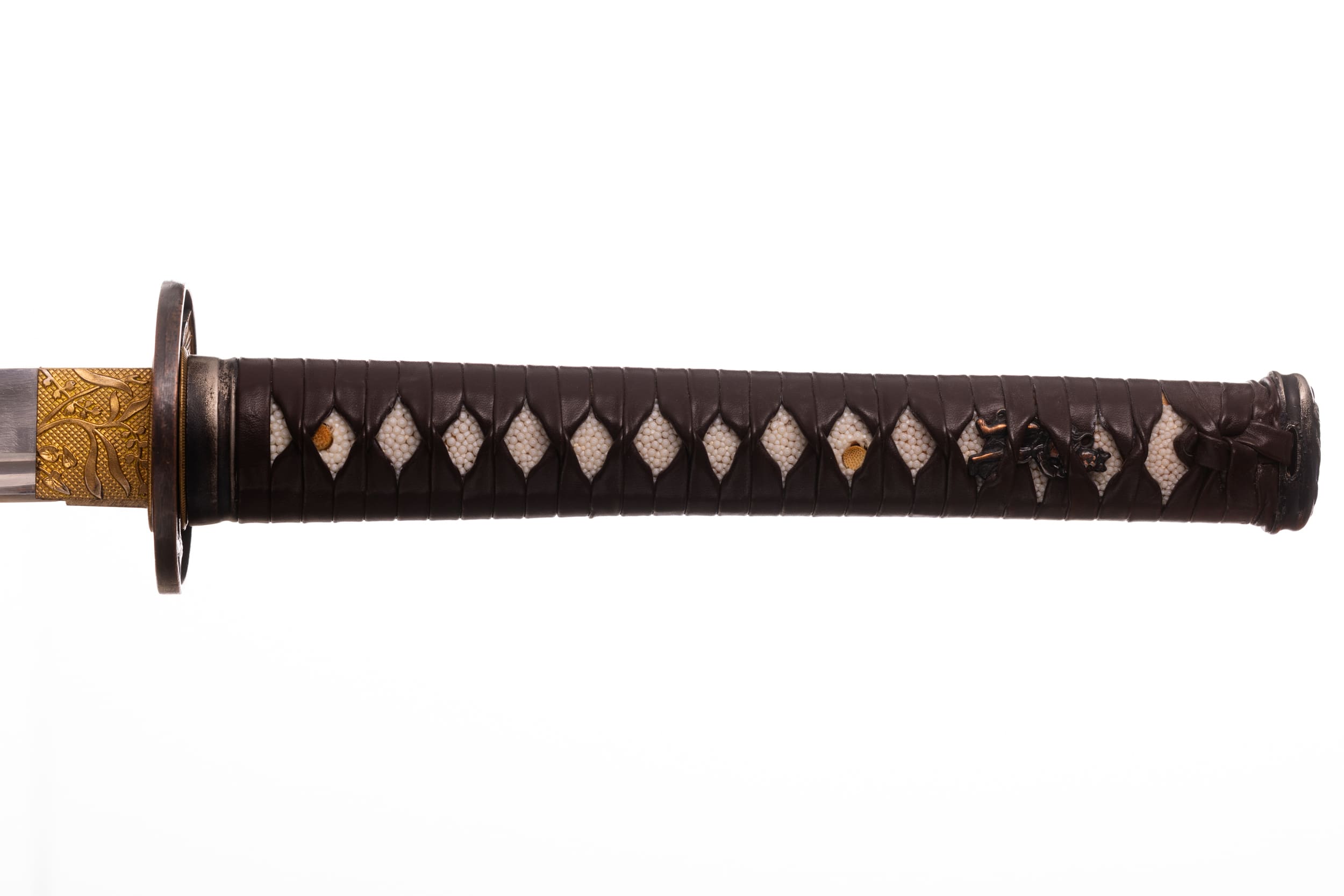 Rękojeść (tsuka) o długości 26,5cm, obłożona same-gawą. Oplot z ciemno brązowej, skórzanej taśmy, o typowym splocie. Miecz można całkowicie rozebrać na pojedyncze elementy w celu ich konserwacji lub wymiany.