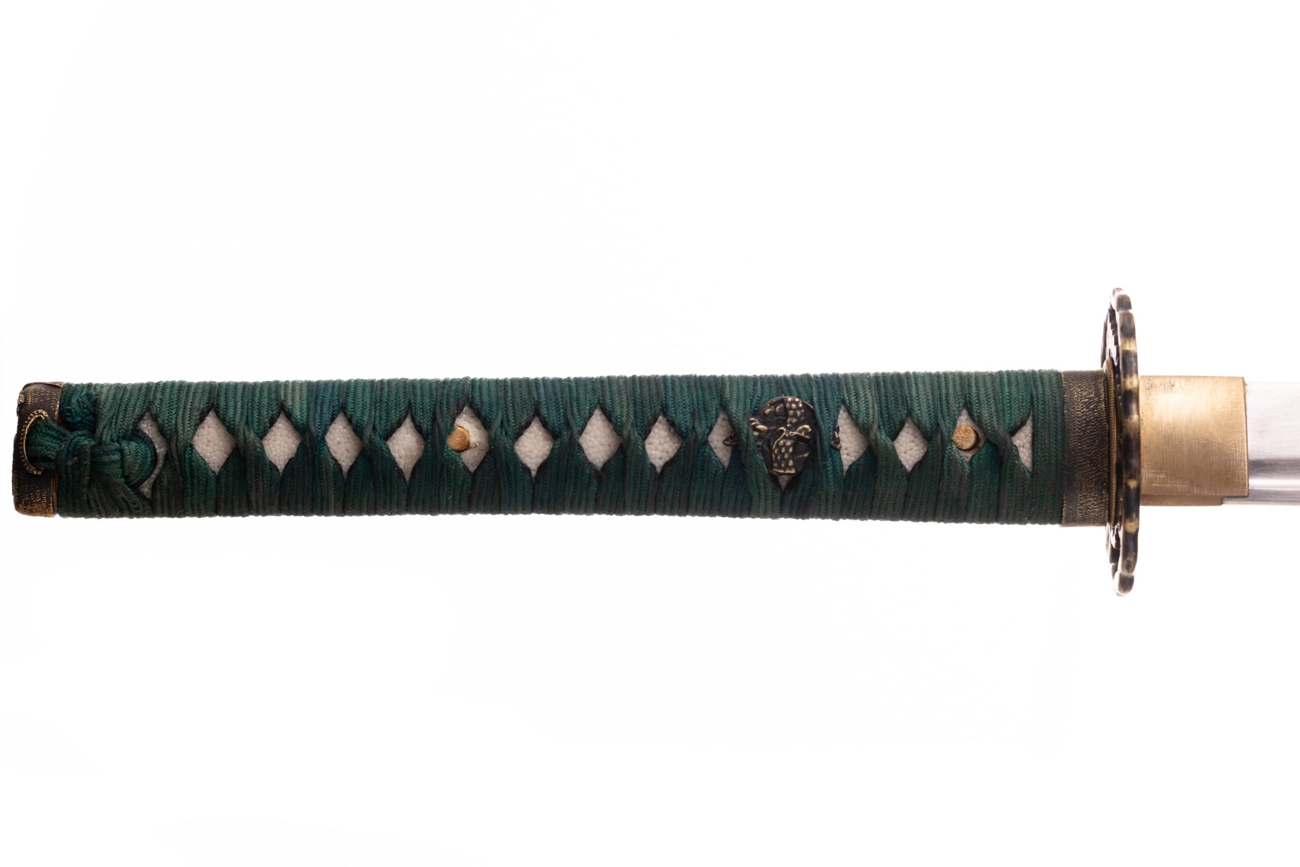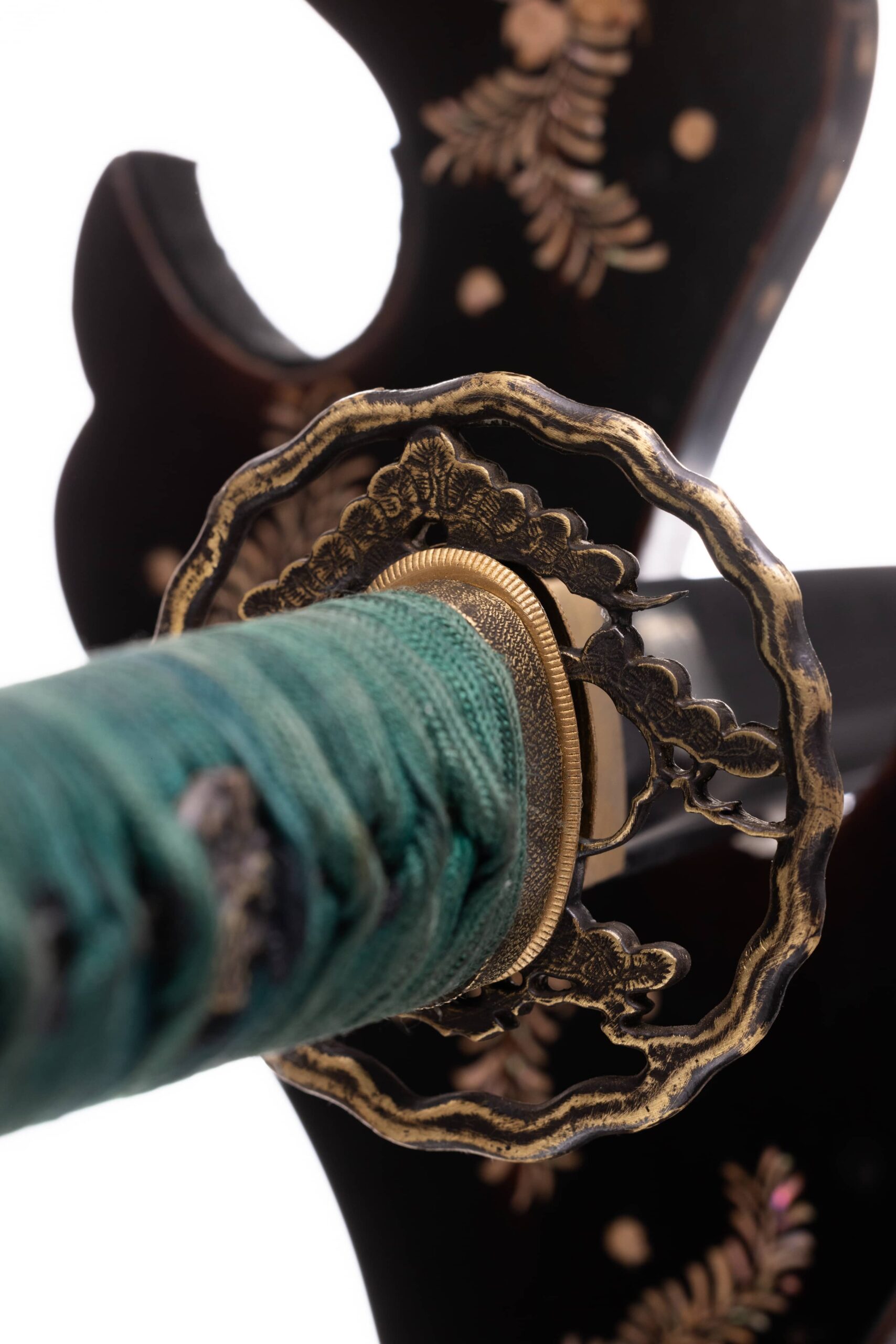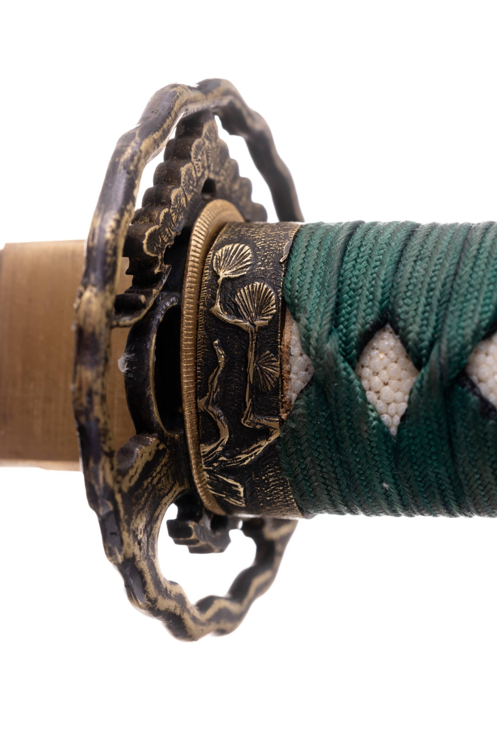 Rękojeść (tsuka) o długości 27,5 cm, obłożona prawdziwą same-gawą. Oplot w kolorze zielonym, postarzany, w stylu shonai zuka, z odsłoniętymi menuki, wykonany z bawełny. Miecz dedykowany pamięci wielkiego mistrza Gichina Funakoshi. Miecz można całkowicie rozebrać na pojedyncze elementy w celu ich konserwacji lub wymiany.